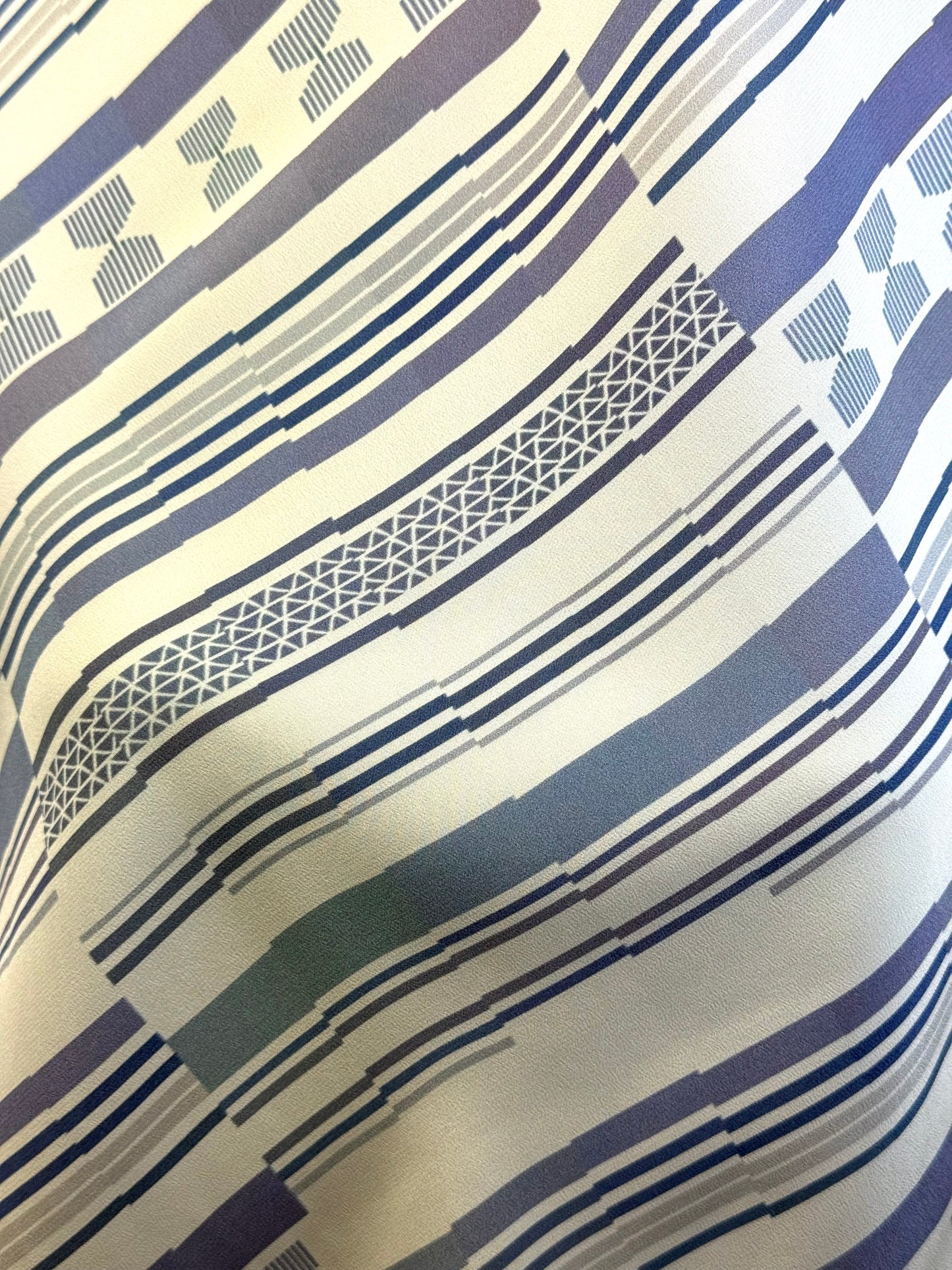 Crêpe-De-Chine - This is a lightweight, 18mm plain-weave, smooth silk fabric which drapes well. It has a matte texture and muted luster.